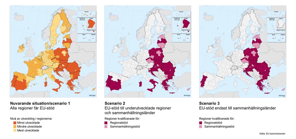 När det gäller regionalstödet som syftar till att minska de ekonomiska skillnaderna mellan medlemsländerna lägger kommissionen fram flera alternativ där Sverige och andra rikare EU-länder blir helt utan stöd.